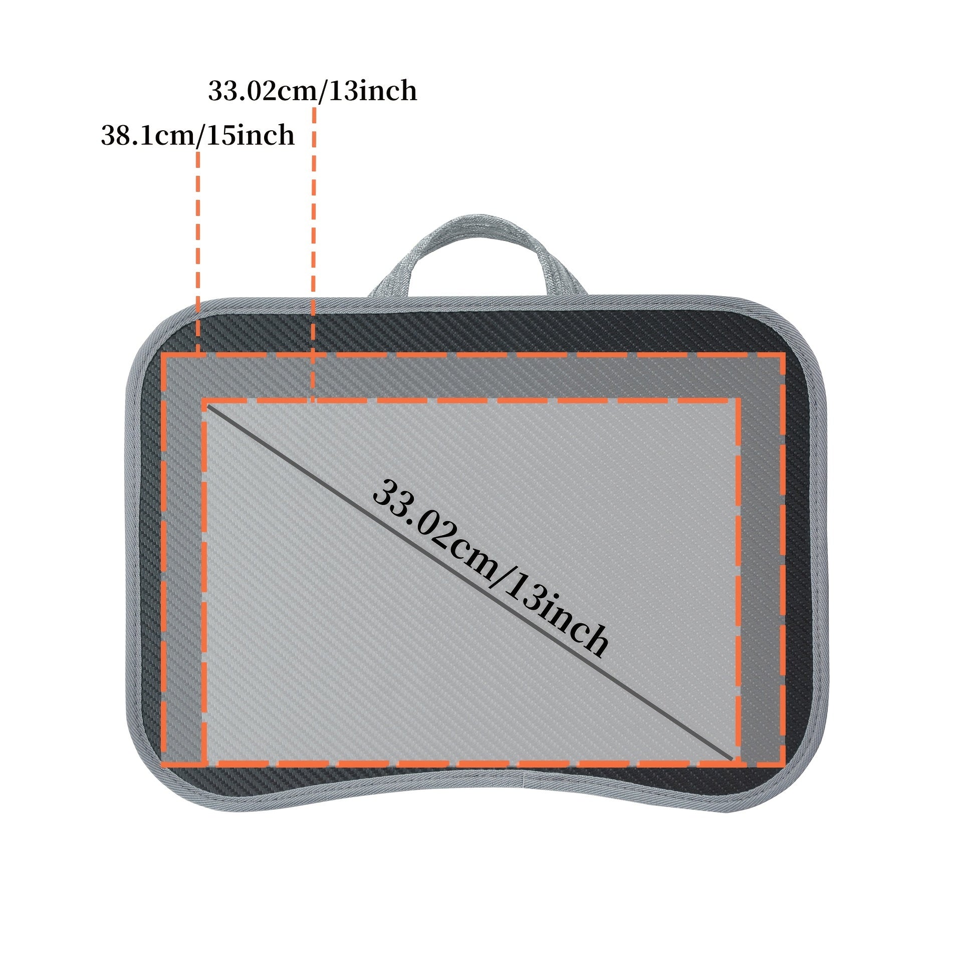 Deze lichtgewicht laptopdesk biedt het comfort en de flexibiliteit die je nodig hebt om overal prettig te kunnen werken of studeren. De zachte onderzijde met schuimdeeltjes vormt zich naar je benen voor extra comfort, terwijl het stevige bovenblad zorgt voor een stabiel werkoppervlak. Dankzij het geïntegreerde handvat neem je de desk eenvoudig overal mee naartoe. Perfect voor laptops tot 15 inch, tablets of boeken – ideaal voor thuis of onderweg.