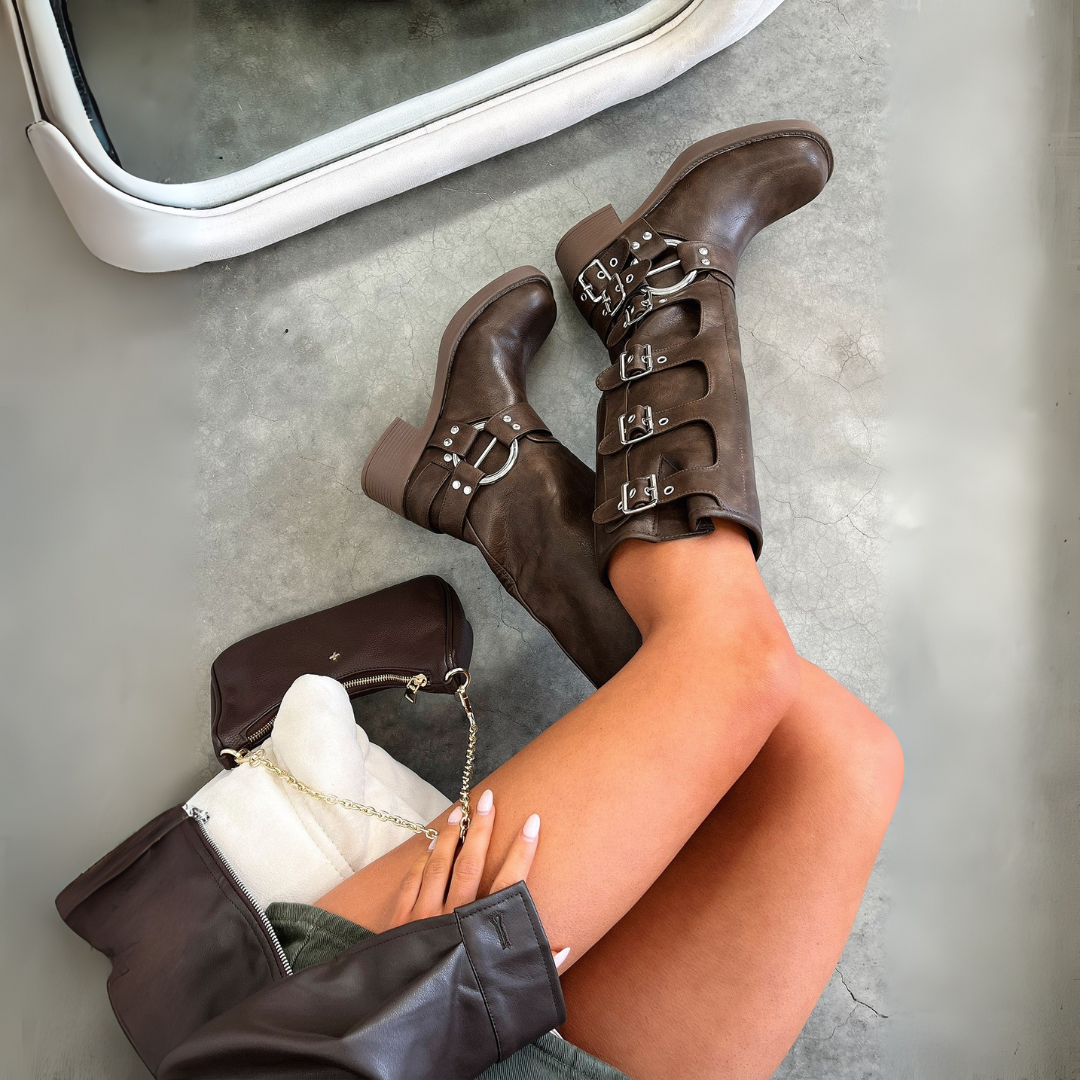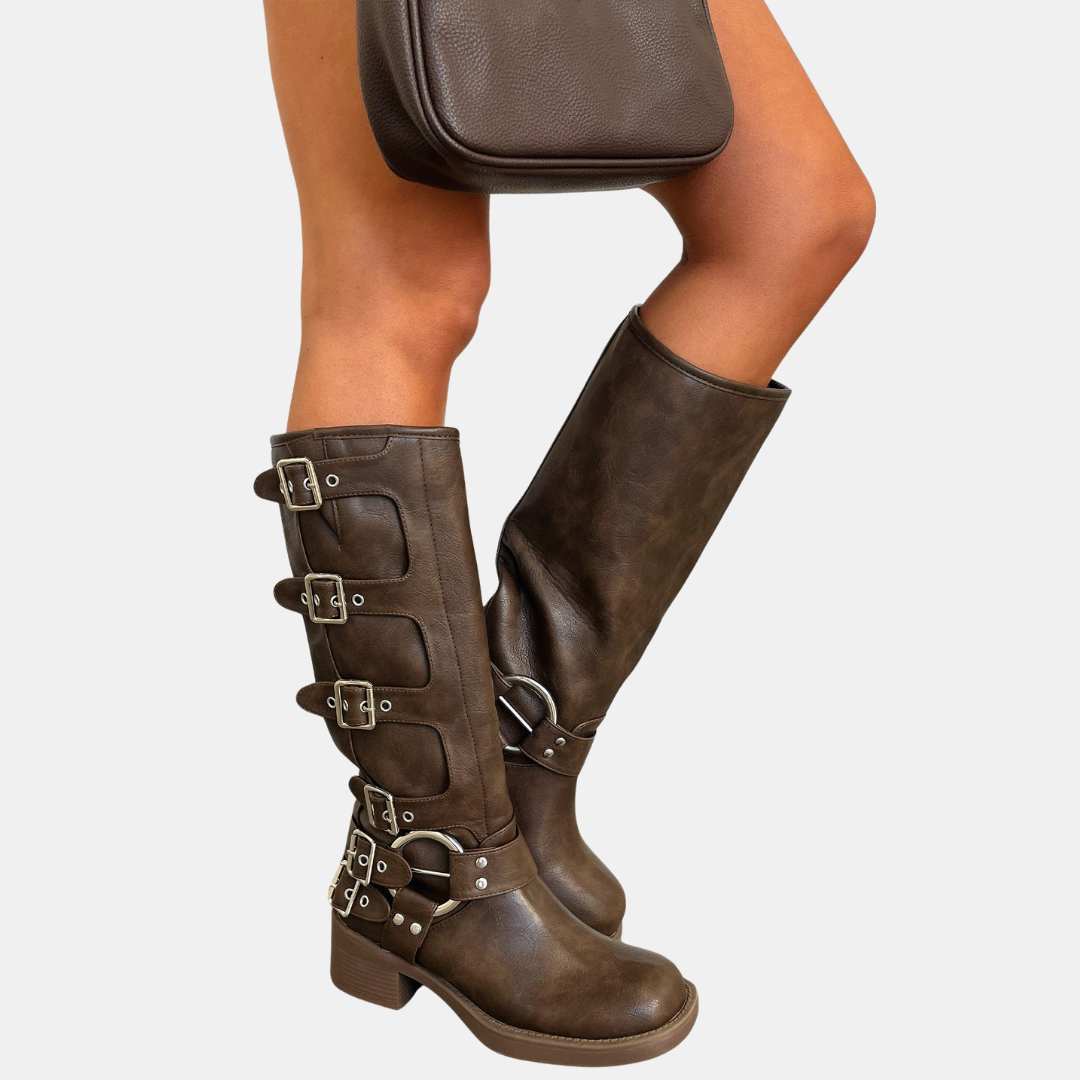 GripLine Dameslaarzen – Hoog Model met Stevige Profielzool