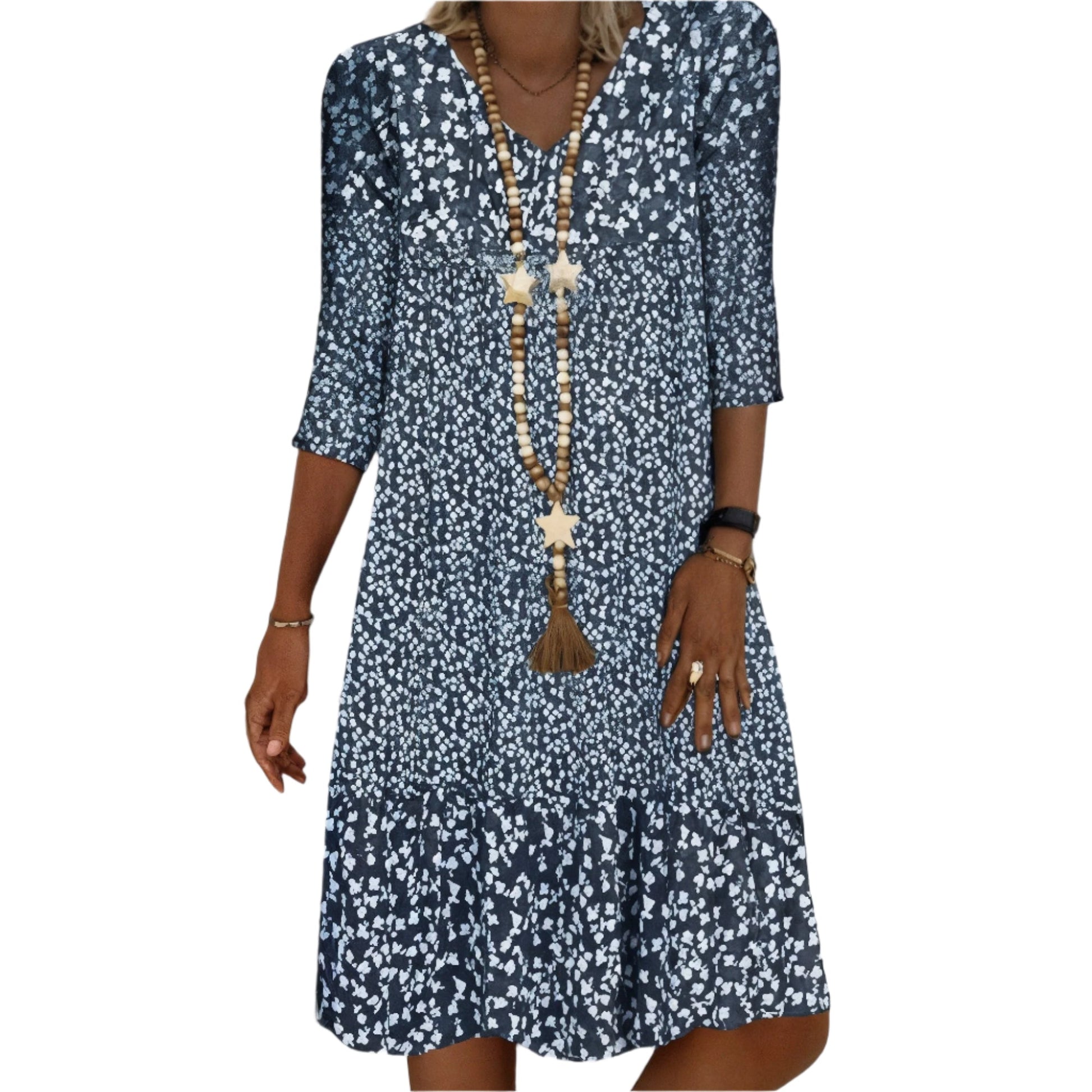 De zachte katoenen stof voelt prettig aan op de huid en de doordachte snit zorgt voor een natuurlijke pasvorm. Dankzij de veelzijdige stijl is de jurk eenvoudig te combineren met jouw favoriete accessoires – of je nu kiest voor casual of feestelijk.