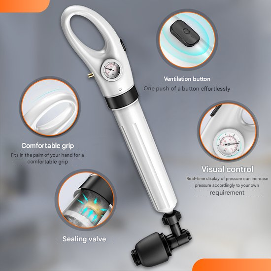 • Verstelbare luchtdruk: Instelbaar van 1 tot 8 bar, afgestemd op elke verstopping.
