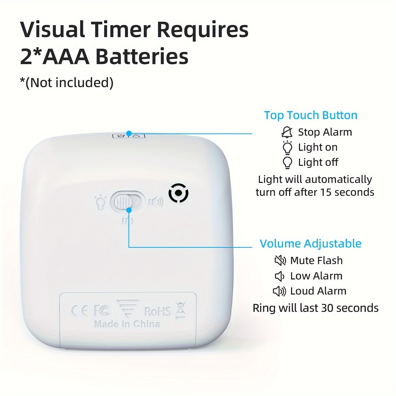 - Regenboog visueel display: Een levendige, gemakkelijk af te lezen kleurenweergave toont duidelijk het tijdsverloop, ideaal voor kinderen, studenten en visuele leerlingen.