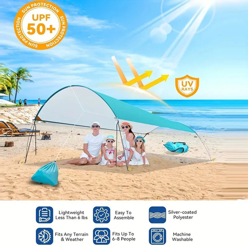 SolShade lichtgewicht zonneschuilplaats met UPF 50 en zandverankering – draagbaar en windbestendig