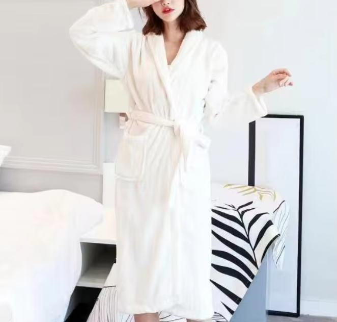 De badjas is vervaardigd uit polyester, coral fleece en flanel, wat zorgt voor een zachte, ademende en warme structuur. Ideaal om 's morgens op te warmen of 's avonds tot rust te komen.